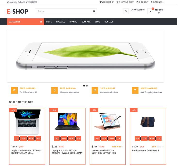 The Fashion Shop Opencart Theme is a stunning and visually appealing e-commerce template designed specifically for fashion retailers and online clothing stores but can be used for the store selling other products. With modern design, boasts a clean and organized layout, allowing visitors to easily navigate through the various product categories and find exactly what they're looking for. The homepage is strategically designed to showcase featured products, new arrivals, and special offers, enticing customers to explore further. Large, high-resolution product images are displayed prominently, enabling shoppers to get a detailed view of each item. The Fashion Shop Opencart Theme is fully responsive, ensuring that your website looks and functions flawlessly on all devices, including desktops, tablets, and smartphones. This mobile-friendly approach enhances user experience and enables customers to shop conveniently on the go. Theme converted from Eshop Ecommerce Template HTML (One of The Best Free Ecommerce Website Templates 2023) and some modify by BlogITCode. Theme easy to install, compatible with OpenCart 3.x.x.